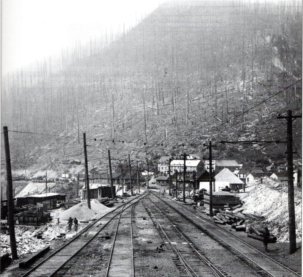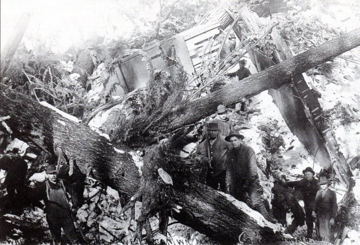 A 1910 view of Wellington before the disaster. The avalanche slope is the hillside in the background.