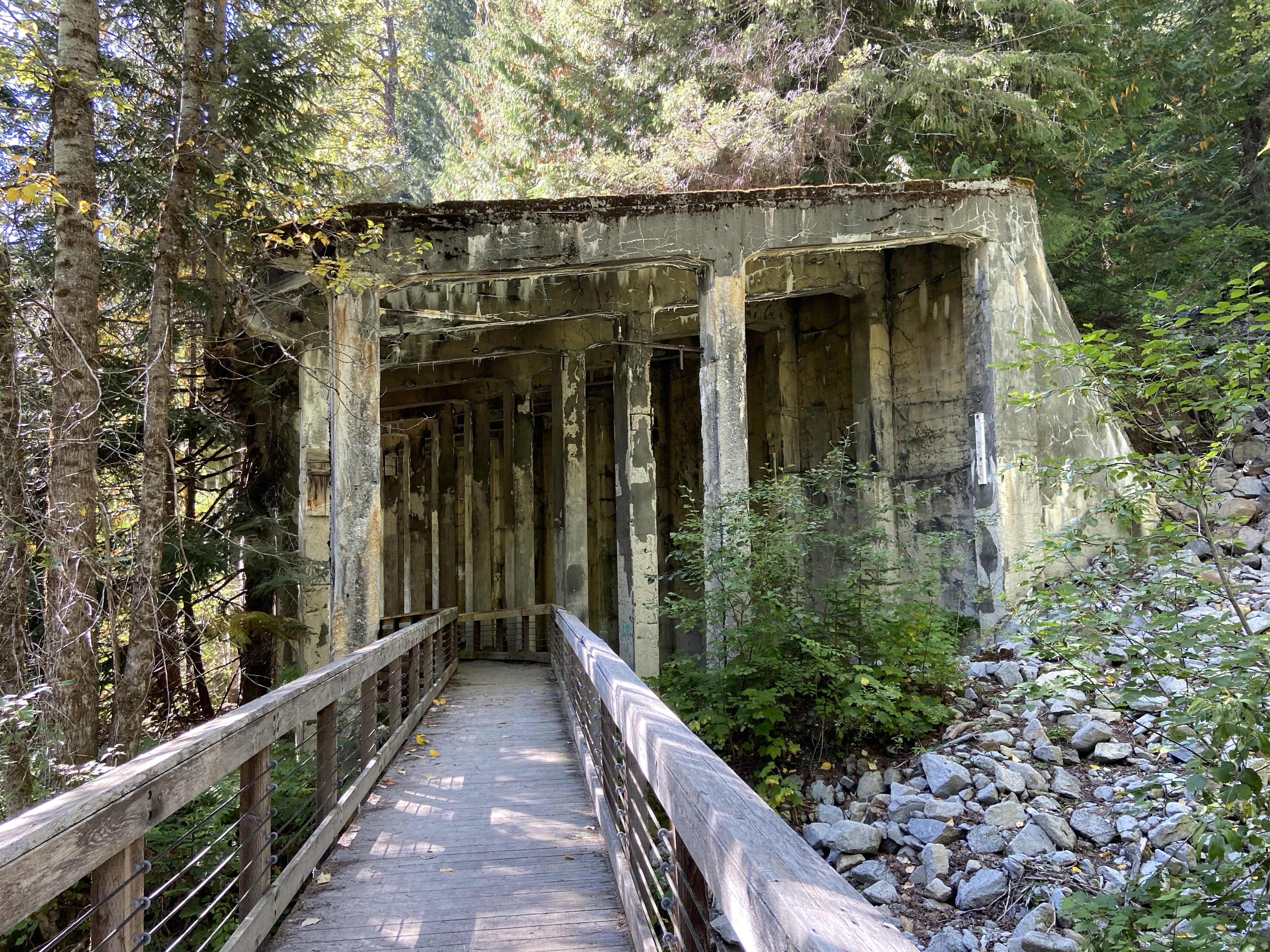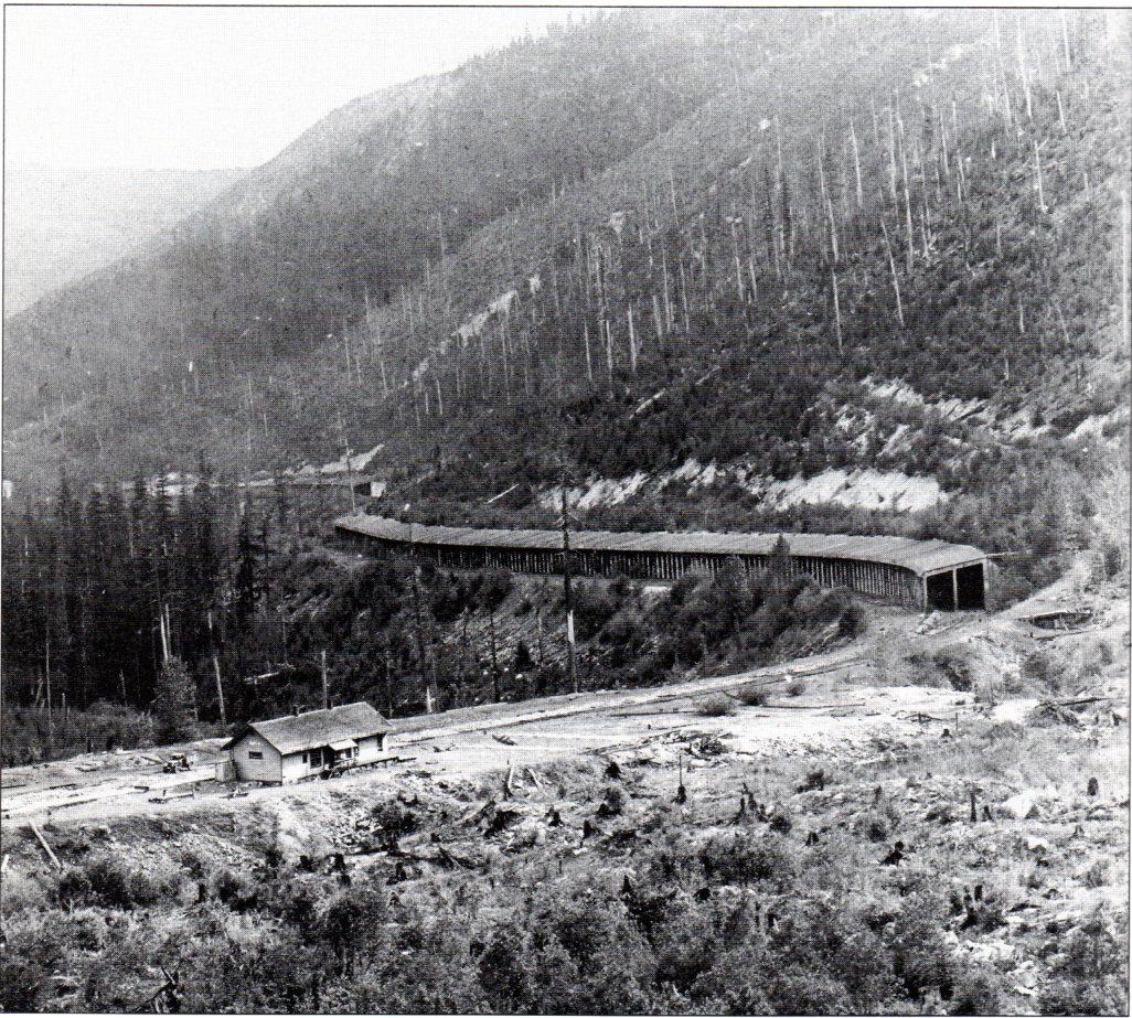 A view of the snow shed then and now and the old Cascade Tunnel.