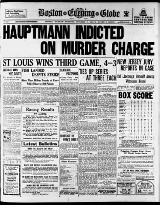 On October 8, 1934 Bruno Richard Hauptmann is indicted for murder in the death of the infant son of Charles A. Lindbergh.