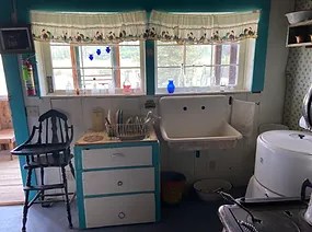 Our wonderful tour guides Jess and Lance and us standing in front of Hazel’s Cabin.