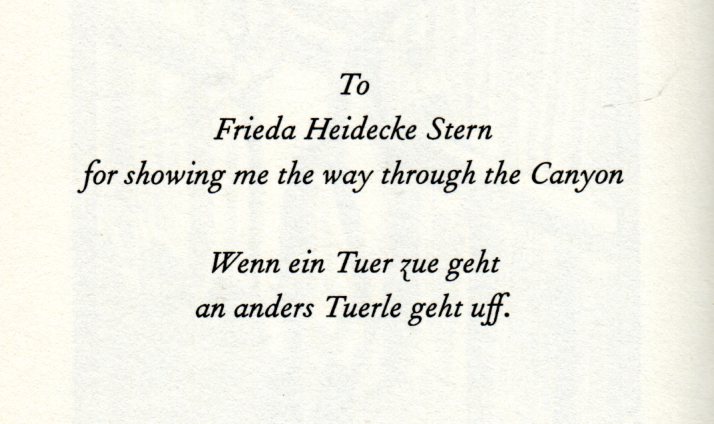 This was the dedication in the original edition of the book. The German translation reads: “When one door closes another door opens.”