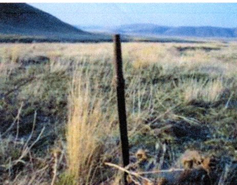 Steel wagon axle marking vicinity where Blanch & Lorenzo Perkin’s bodies were found in July 1878, upper Rattlesnake Springs near Snively Gulch, Handford Reach National Monument, Benton County.