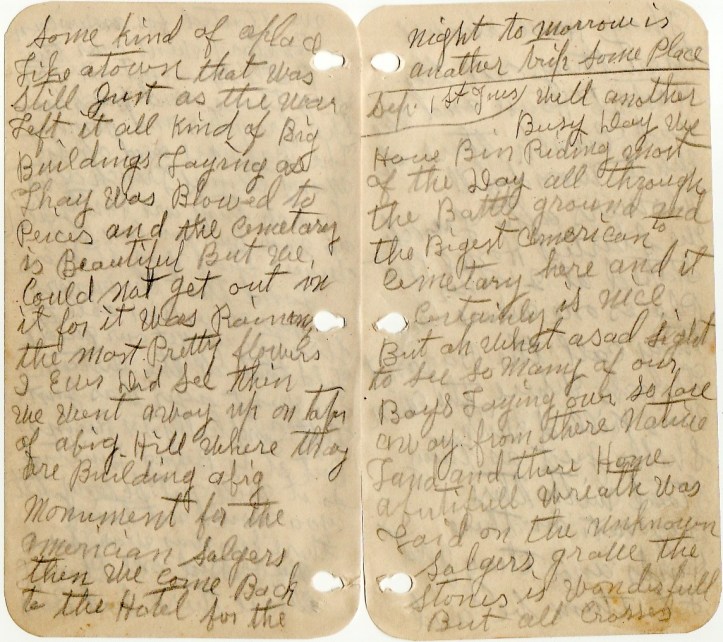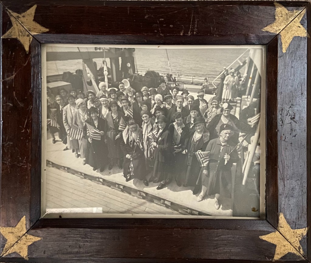 In 1918 the U.S.S. Cyclops and 309 men vanished without a trace at sea in the area known as the Bermuda Triangle. Sally’s Great Great Uncle was aboard that ship. Her G.G. Grandmother kept a diary when, 13 years later, she was on a Gold Star pilgrimage with other mothers and wives who had lost sons or husbands in the war.