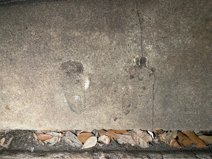 Child’s footprints just inside the doorway.