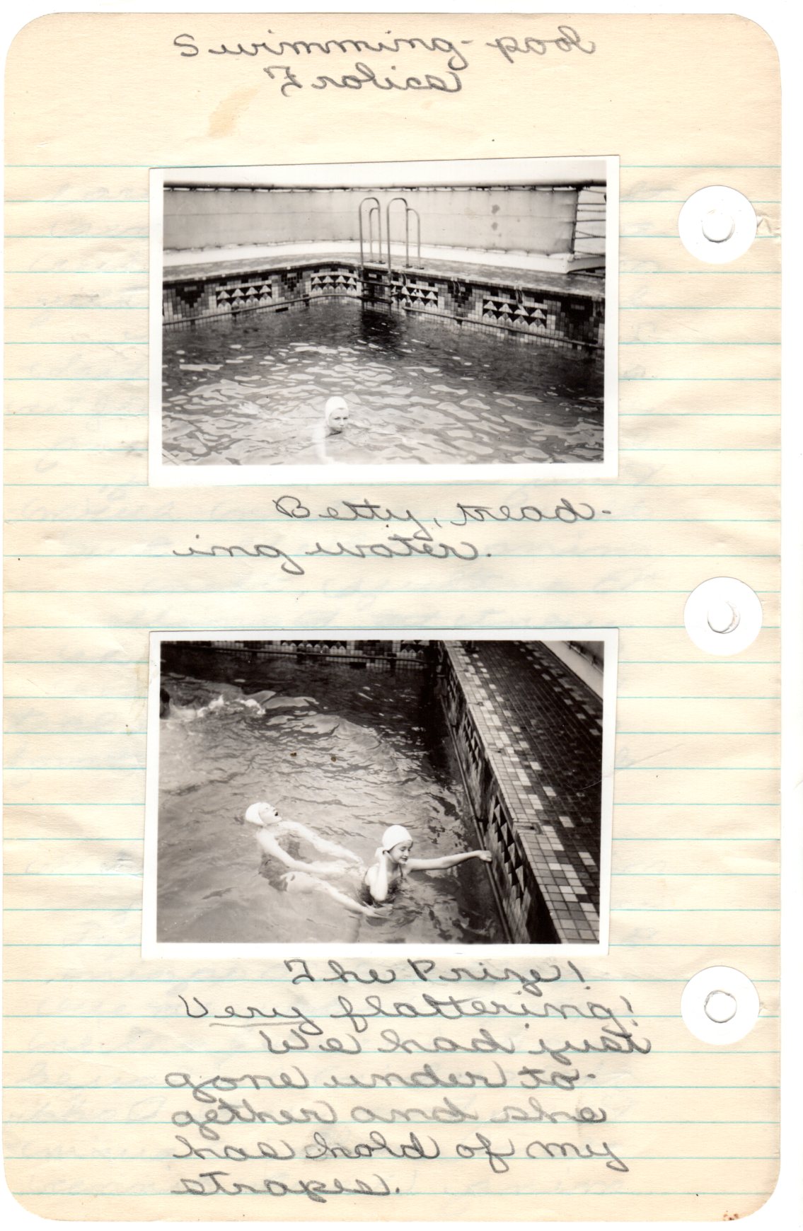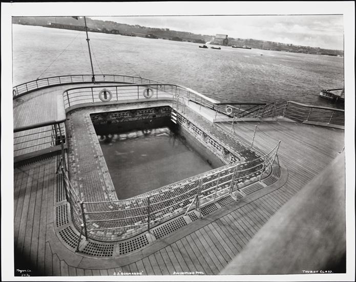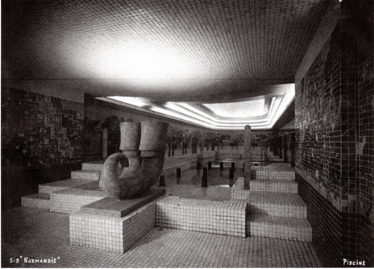 Pools of the Normandie: The top left photo shows the First Class pool. The bottom left shows the Tourist Class pool. Now compare Barbara’s photos from her diary showing her and her sister in the Tourist Class Pool. The link below is from the Daily Mail which show some incredible photos of this magnificent ship.