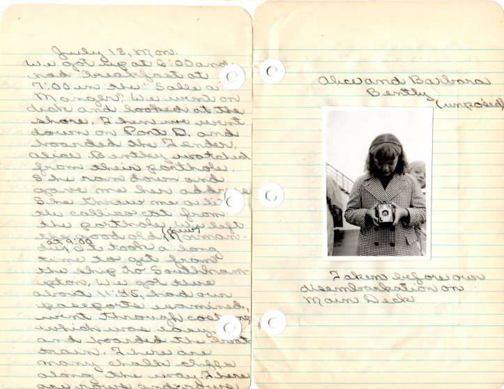 First page of Barbara’s diary. The first autograph is the one of the German Opera Singer she met on the boat.